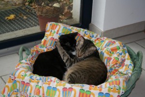 Du hast auch den Mut gefunden, Dich kraulen zu lassen, aber nur, wenn Du es wolltest und dort, wo Du es wolltest, meist abends auf dem Sofa. Auch wenn Du Dich ansonsten nicht anfassen lassen wolltest, hast Du immer Deine Zuneigung und Dein Vertrauen zu uns gezeigt. Und auch wenn Du nicht miauen konntest, hat die Verständigung geklappt und wir haben hoffentlich meistens Deine Wünsche erfüllen können. Nur bei ganz besonderen Anlässen, z.B. als Du Castello den Weg durch die neue Katzenklappe gezeigt hast, durch die er sich drei Wochen lang nicht getraut hat, hast Du Dich in die Küche gestellt und miaut. Man muss halt nicht dauernd reden und hat trotzdem viel zu sagen.