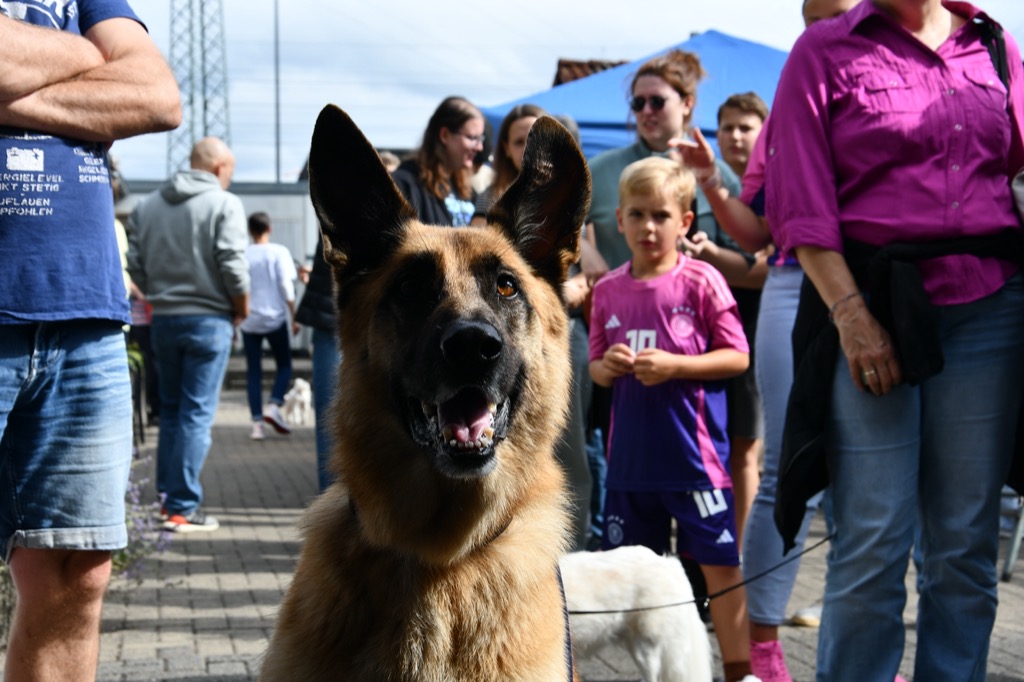 Am 31.08.25 fand unser diesjähriges Sommerfest statt – und auch wenn der Aufbau noch unter dunklen Regenwolken begann und die helfenden Hände „beglückte“, klarte der Himmel im Laufe des Tages auf, so dass zum Start um 12h kein Tröpfchen mehr runter kam. Nach einer schönen Einleitung und Vorstellung der teilnehmenden Tierschutzorganisationen von David haben sich viele große und kleine Besucherinnen und Besucher den befreundeten Organisationen und dem leiblichen Wohl gewidmet.